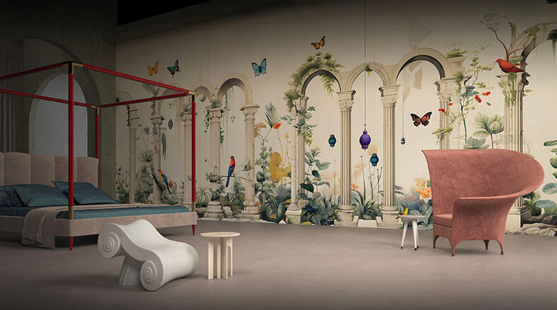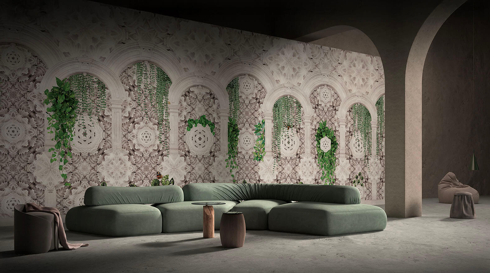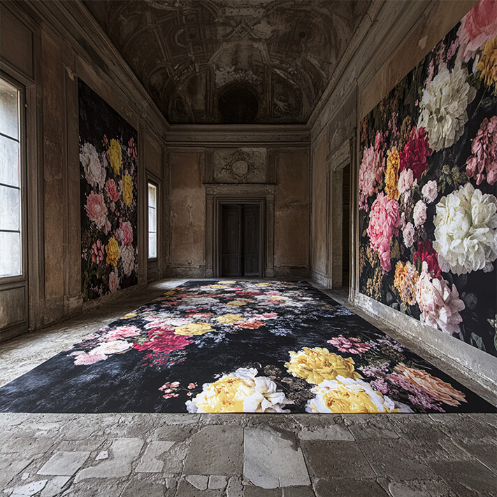 Designing artworks with a focus on narrative and spatial impact, free from the limits of repetition, the pieces become visual stories. Colour and composition guide each work, allowing it to expand across large surfaces. Through digital printing, the artworks maintain their clarity while adapting to the needs and scale of a space.