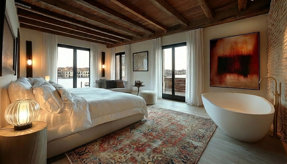 Tucked behind a refined façade that keeps its beauty in reserve, Hidden Palazzo unfolds with quiet confidence, echoing the measured pace of Venice. An 18-room boutique hotel crafted for guests who value privacy over display, Hidden Palazzo offers a refined retreat of calm rituals, discovery of hidden local customs, secrets, and traditions, and understated indulgence. Inside, the city dissolves into shadow and reflection: stone worn smooth by time, silken light gliding across venetian stucco walls, and hushed corridors that suggest discovery at every turn. Spaces shaped by craft and rediscovered traditions, interpreting heritage through material expression, atmosphere, and restraint.