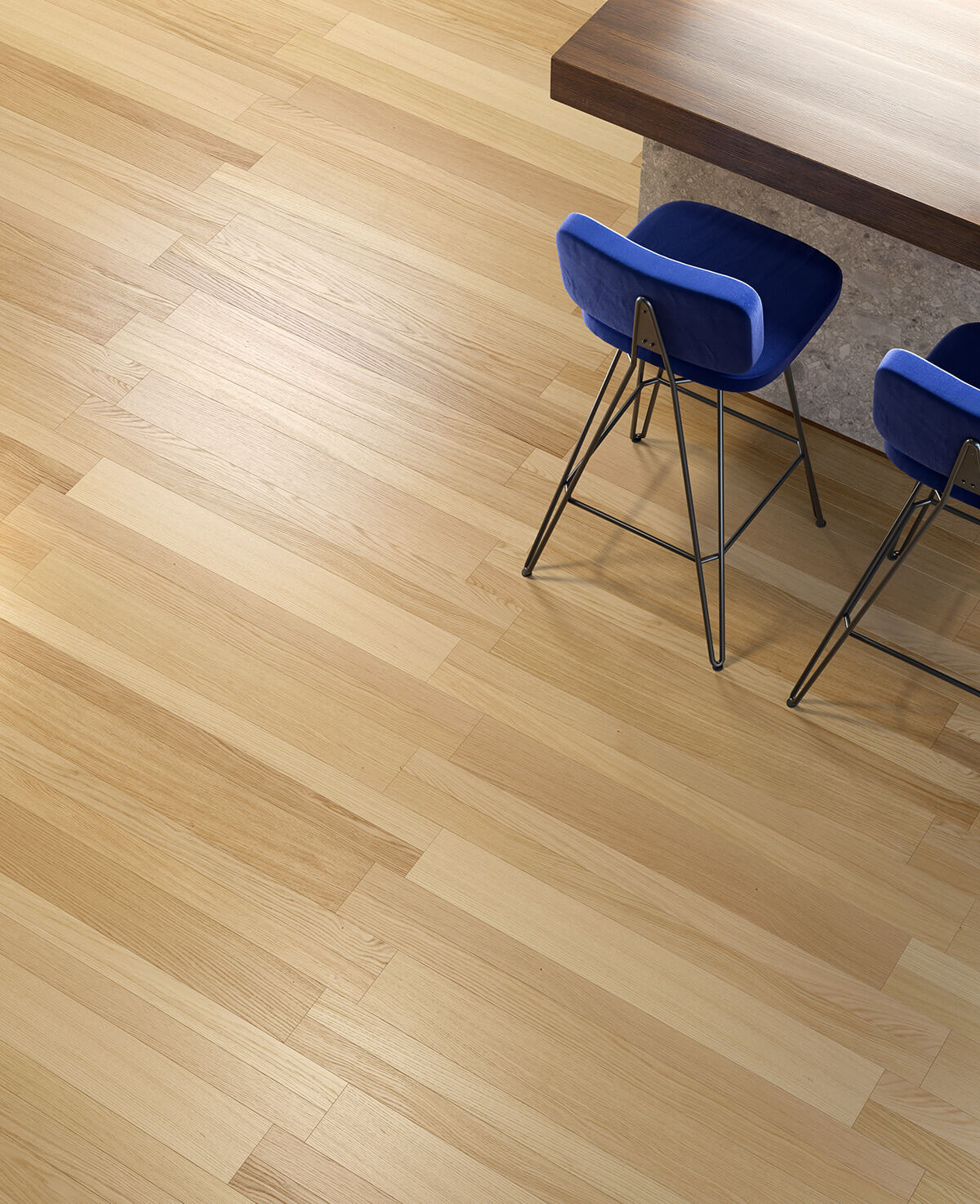 New Chevron reinterprets the traditional herringbone pattern with a refined interweaving of wooden modules, transforming it into a bold and contemporary design. The result is a sophisticated visual dynamism, capable of transforming spaces with elegance and originality. New Chevron recalls the nobility of historic European floors, reinterpreting them with a modern, essential, and decisive aesthetic. Its lines evoke the threads of fabrics that intertwine and fray: a distinctive and material signature of the Diesel world. The color variations—oak, walnut, ebony, and gray wash—enhance the natural grain of the wood, highlighting its authenticity and offering versatile solutions for interiors with a distinctive style.