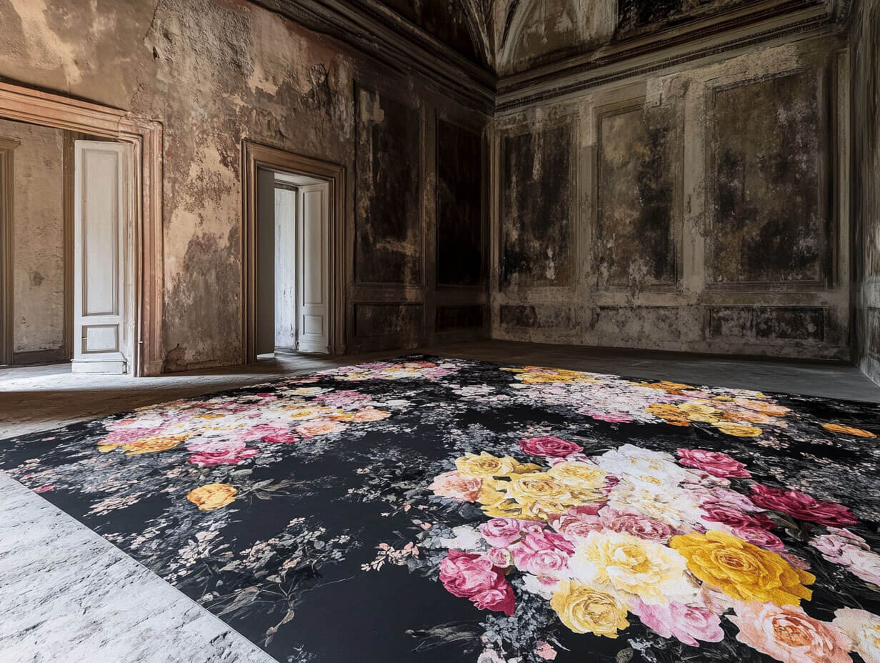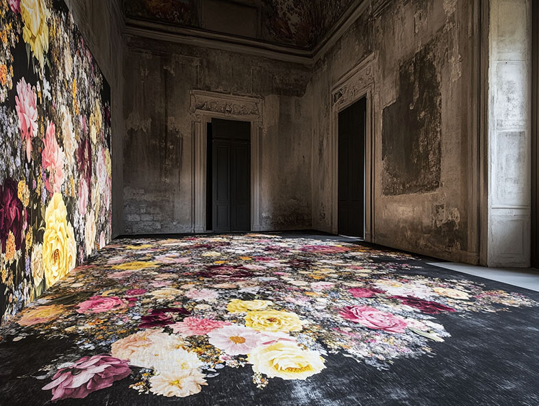 Concept design for an immersive exhibition experience in a historic palazzo, where surface design becomes the primary language of storytelling. The project transforms an abandoned architectural shell into a layered spatial narrative, using wallpapers and rugs installations to build atmosphere. The result is a temporary world within the palazzo, where pattern, scale and materiality shape an experience that feels intimate.