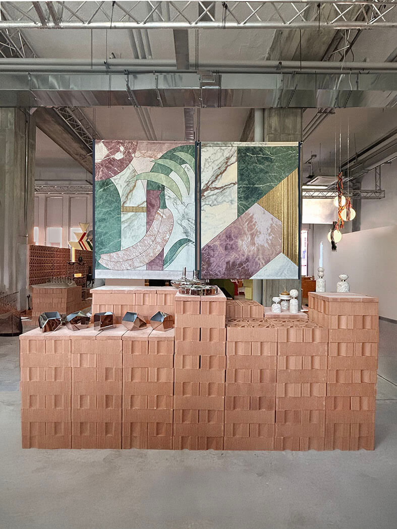 The series explores the interplay of opposites, revealing how stone and textile can intertwine in unexpected ways. At first glance, the pieces appear to be solid marble, but upon closer inspection, they are revealed as soft woven textiles.