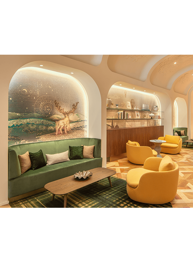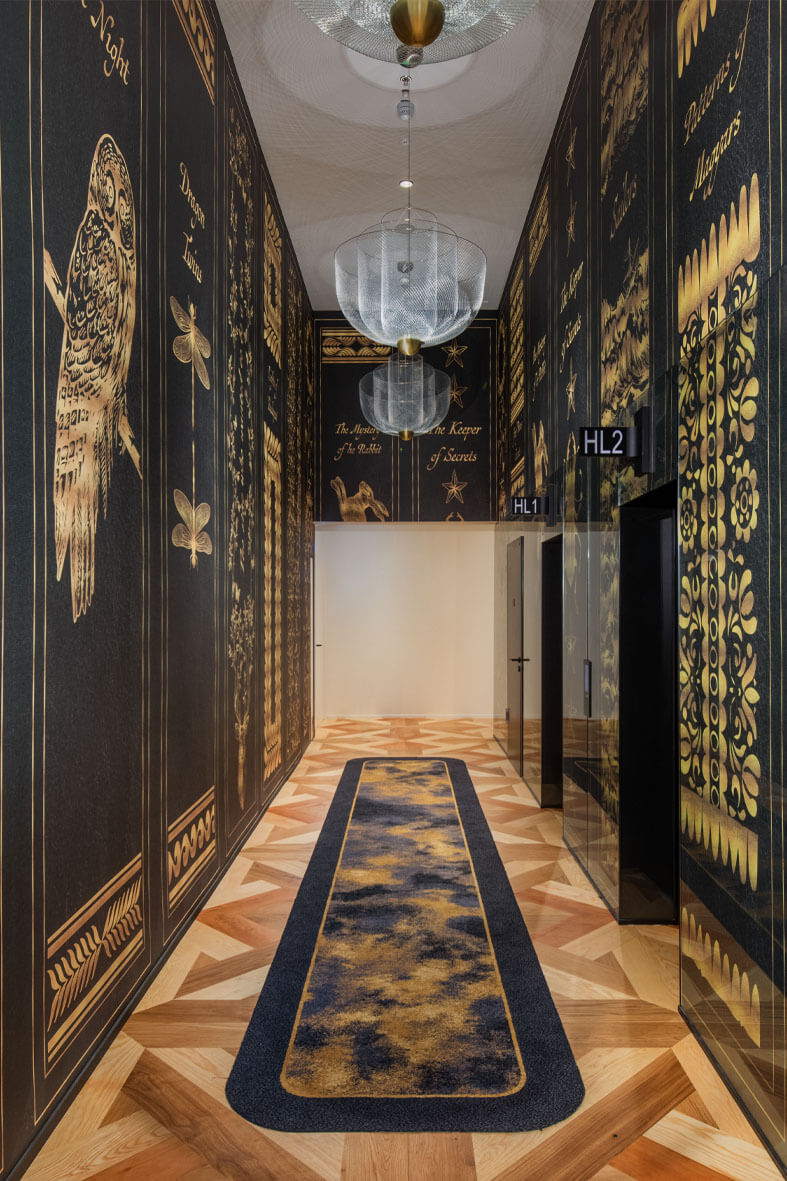A cohesive narrative rooted in Hungarian folklore was carried throughout the spaces, reflected in the furniture, atmosphere, wallpapers and rugs, creating a unified and immersive experience.